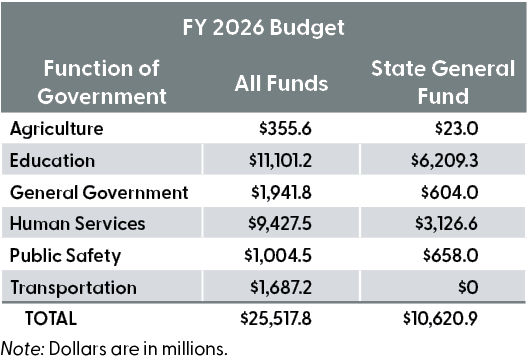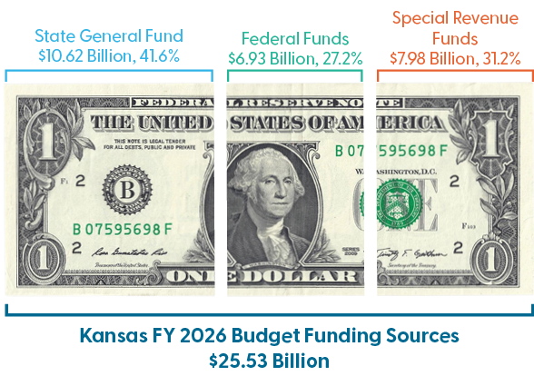 Kansas’ total FY 2026 budget is $25.6 billion, including $10.6 billion from the SGF.
