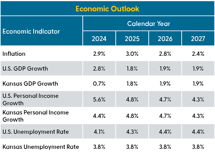 If the group’s forecasts hold up, moderate growth in productivity and personal income – combined with slowing price increases – should provide a more favorable economic climate for Kansans in the years ahead.