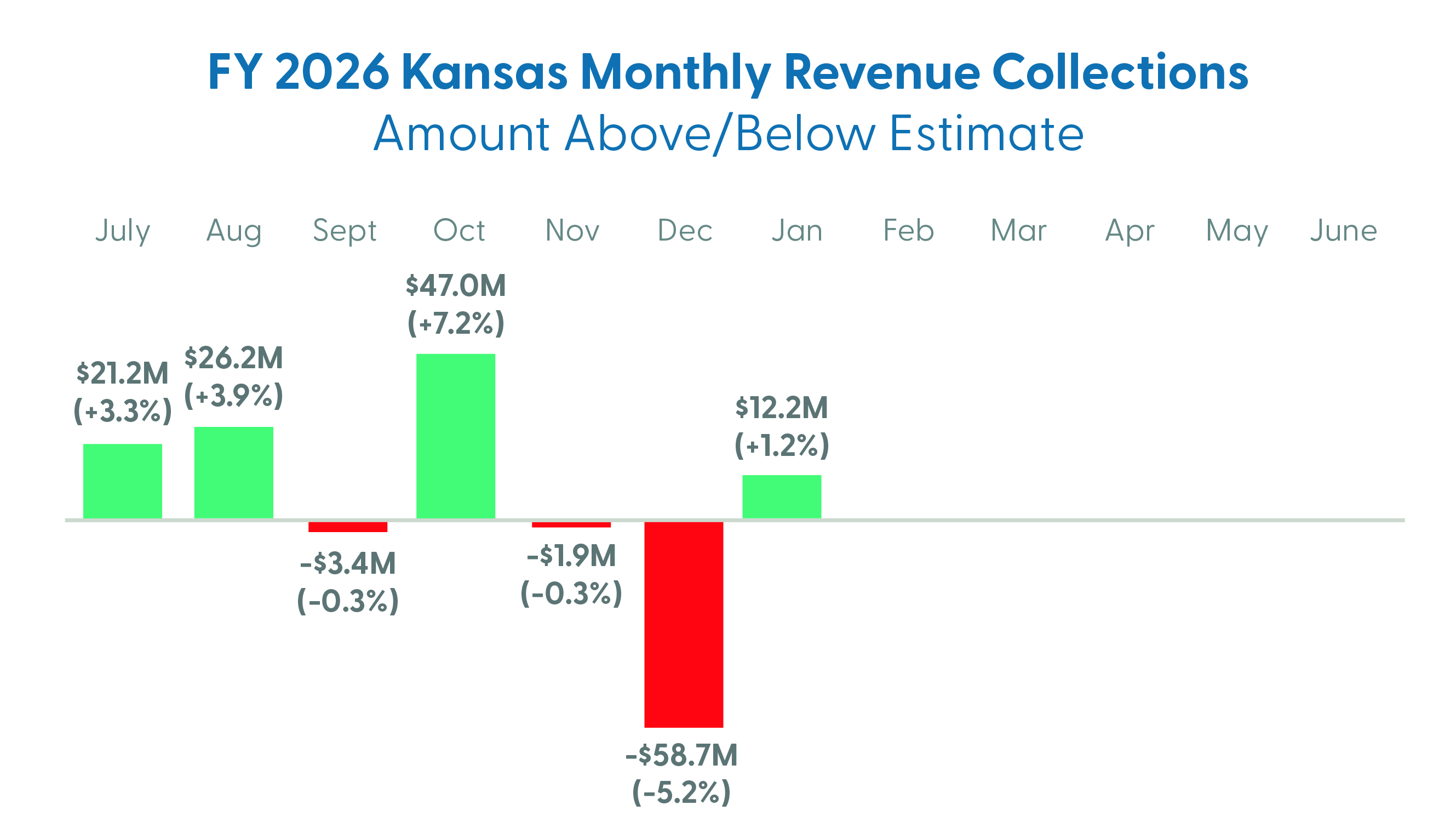 The state collected $988.2 million in tax revenue in January, exceeding expectations by $12.2 million. The state collected $45.4 million more in January 2026 than in the same month last year. On a cumulative basis, total collections are $47.7 million higher than by this time in FY 2025. Compared to last year, state receipts appear to be in good shape, but keep reading on.